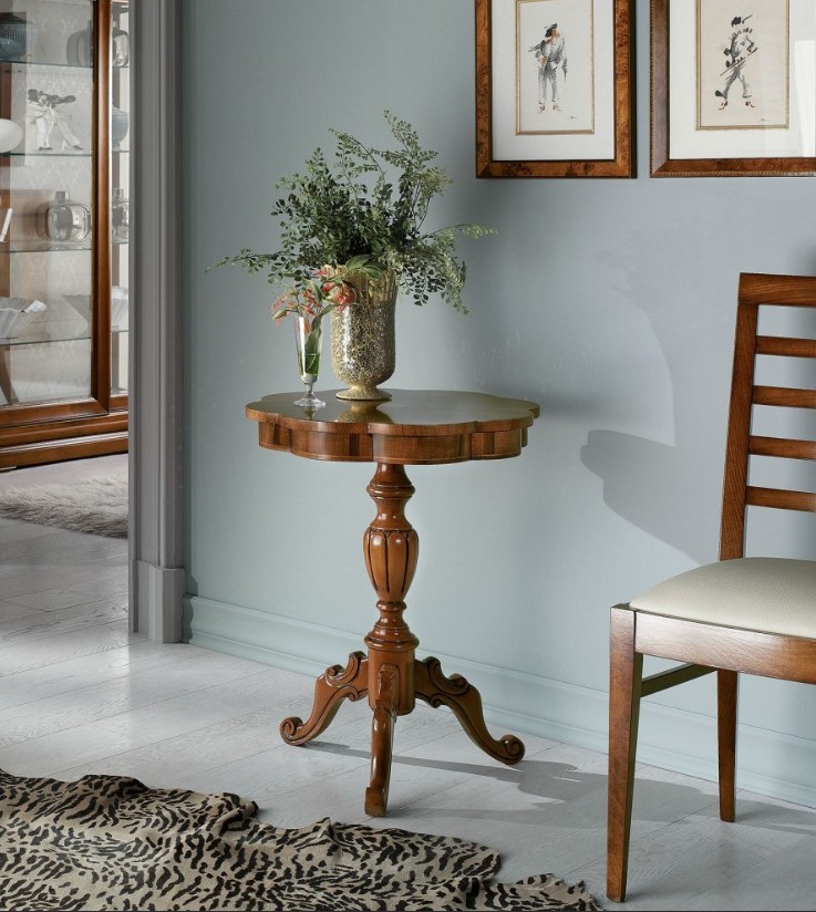 Shaped round side table with inlay