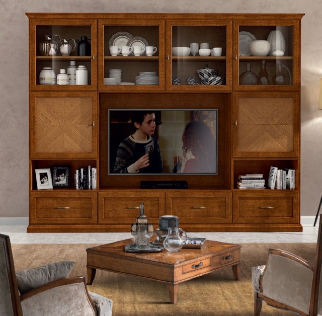 Composizione con pannelli intarsio a spina di pesce