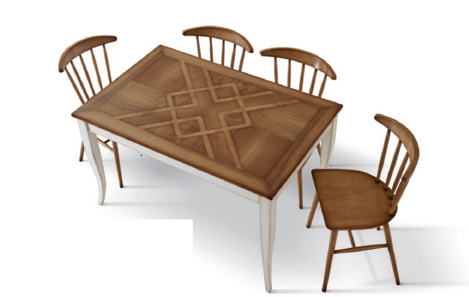 Tavolo rettangolare allungabile con intarsio con 2 allunghe da cm. 40.