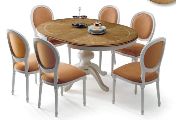 Tavolo rotondo allungabile spina pesce di rovere.